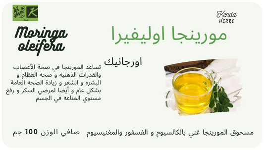شاي أعشاب المورينجا الوفيرا الأورجانيك 27 % كالسيوم زيادة , من كيندا 100 جم