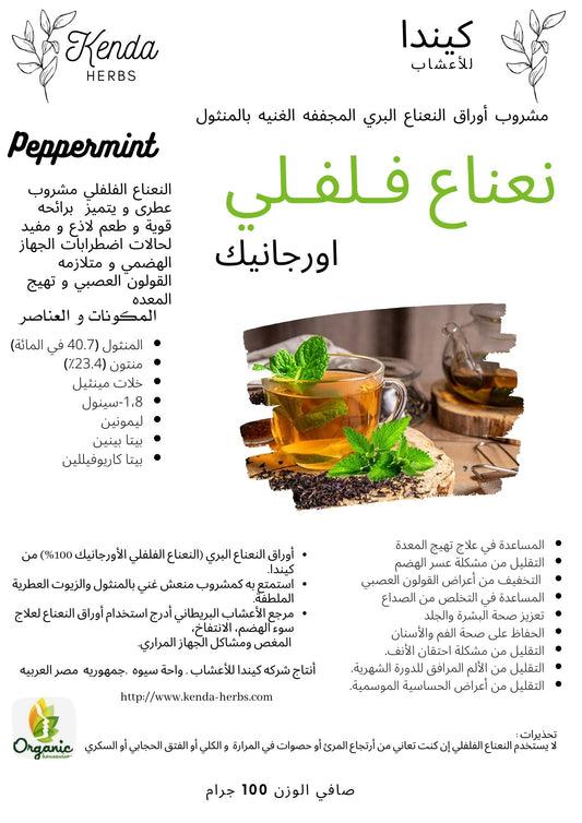 عرض مشروب أوراق نعناع فلفلي أورجانيك مجفف . 240جم من كيندا